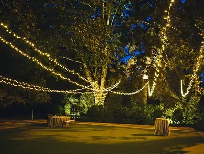 Trabajamos de manera artesanal, cuidando que el ambiente se transforme y que todo fluya con armonía. Ya sea un camino iluminado entre árboles centenarios, un salón envuelto en luz cálida o una cena bajo un cielo de estrellas, nuestro equipo se encarga de crear la atmósfera perfecta para que viváis una noche inolvidable.